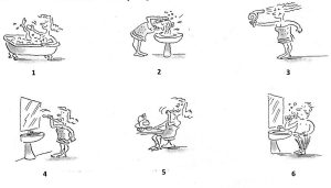| Actions dans la S. de bains (voc) | ici | Actions dans la S. de bains (voc/conj) – 2 | ici |